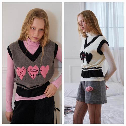 [에고이스트]울혼방 하트 아가일 니트 베스트 ER4OKV51_DG