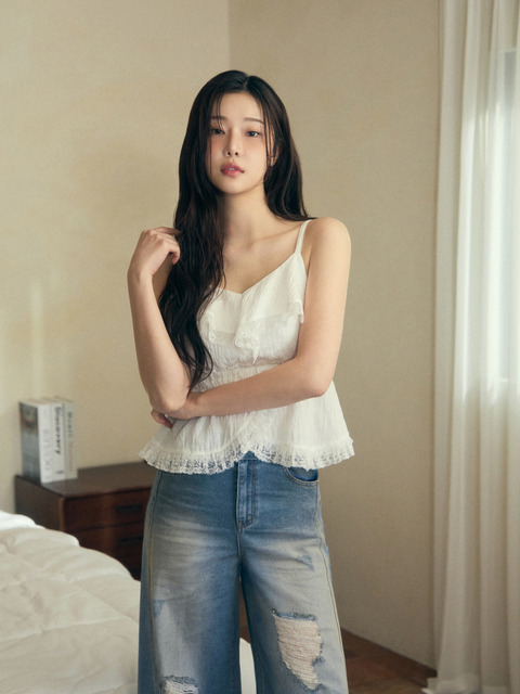 [에고이스트] 러플 레이스 슬리브리스 블라우스 ES2WV360
