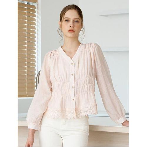 [미니멈 에브리데이]로맨틱 셔링 V넥 버튼 블라우스 (EC1BA015D)