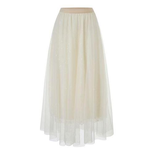 [미니멈에브리데이][미니멈 에브리데이]레이스 스팽글 포인트 레이어드 롱 스커트 (EC1WH003D)