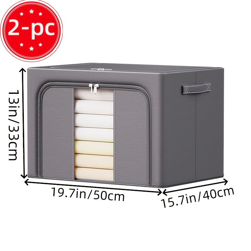 TEMU 투명 창문이 있는 대용량 독립형 접이식 수납 상자 2개, 두꺼운 스틸 프레임 | 내마모성 및 스크래치 방지 | 강화된 손잡이