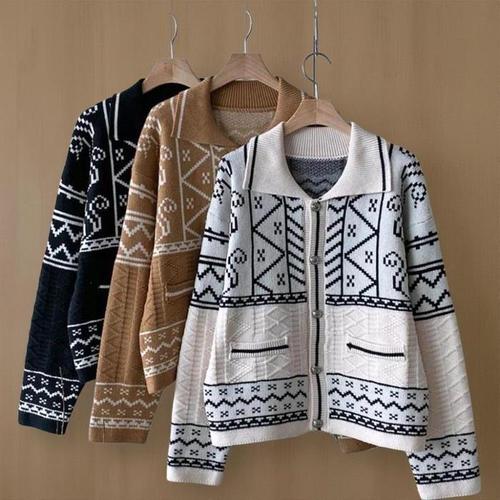 [신상오픈런]여성용 간절기 에스닉 패턴 버튼 카라 니트 가디건 (41041117)