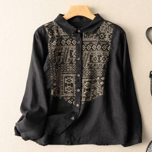 에스닉 긴팔 블라우스 자수 남방 보헤미안 복고풍 셔츠