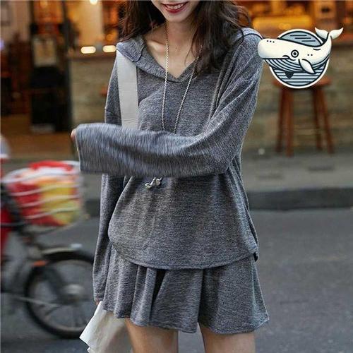 [에이치플러스몰]여름 에슬레저 세트 편안한 후드티 스커트 바지
