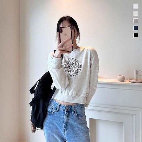 [에어플레인]러브서클 크롭 긴팔 맨투맨