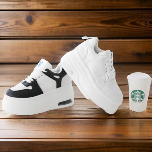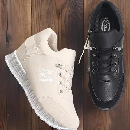 TEMU 여성용 두꺼운 밑창 레이스업 스포츠 신발 | 가볍고 튼튼한 미끄럼 방지, 패셔너블한 캐주얼 신발, 올 시즌, 단색, 폴리우레탄 갑피 및 안창, 패브릭 내부, PVC 밑창