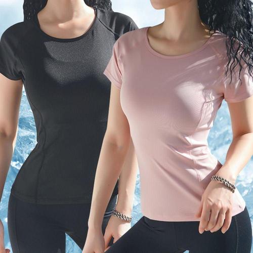 1+1 에어로빅복 여성 헬스복 상의 복 여름 필라테스 티셔츠