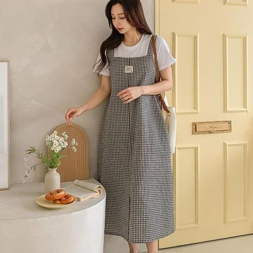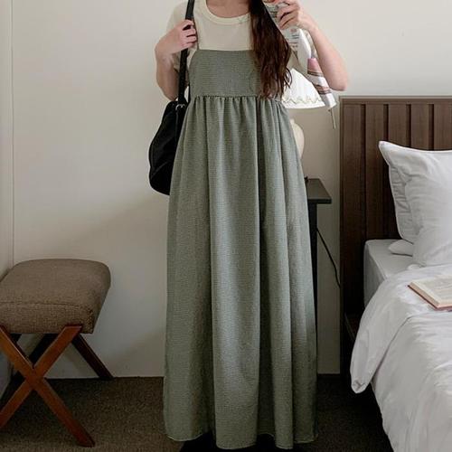 [신상오픈런]깅엄 뷔스티에 끈나시 에이라인 엠파이어 롱원피스 (31549984)