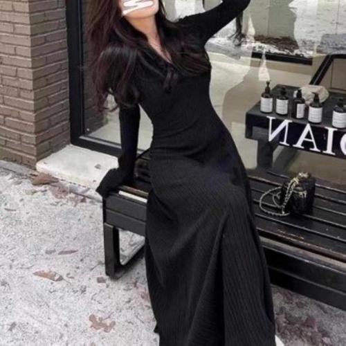 [다잇템][다잇템] 여성 에이라인 단추 스웨터 롱 골지 슬림핏 귀여운 원피스_23540789_588872