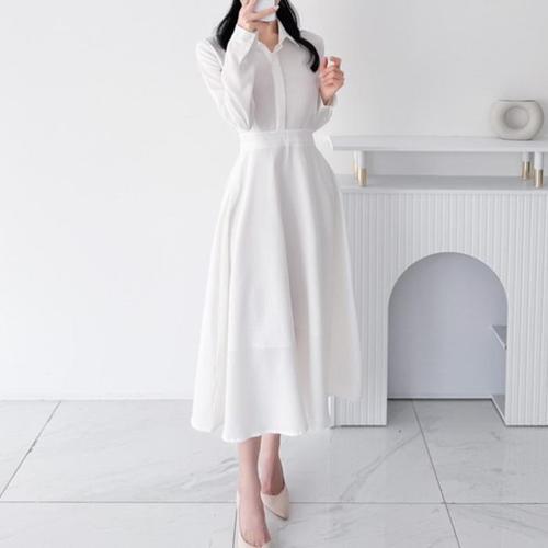 [신상오픈런]슬림핏 셔츠원피스 에이라인 플레어 흰색 봄하객 (30273237)