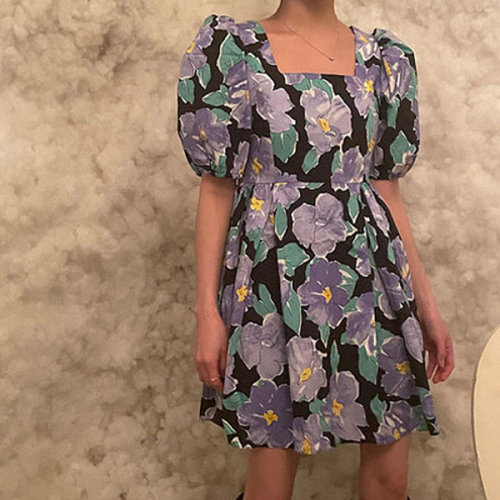 슈팅스타 / 러블리 스퀘어넥 퍼프소매 에이라인 원피스