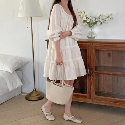 요루 스판 소매 퍼프 A라인 원피스(TIOAE7568)