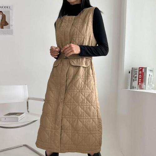 [신상오픈런]벨트 라운드넥 겨울 깔깔이 에이라인 퀼팅원피스 (28832645)