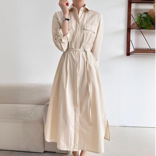 [신상오픈런]링벨트 셔츠핏 아노락 에이라인 옆트임 나일론원피스 (30268380)