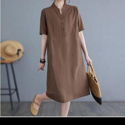 Makone 여성 여름 코튼 반팔 버튼 셔츠 원피스 A라인 하객룩 롱원피스
