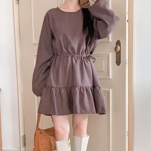 [다잇템]여자 에이라인 쁘띠 골지 민무늬 슬림핏 원피스