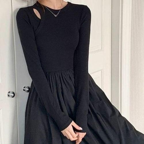 [에이치플러스몰]어깨펀칭 에이라인 원피스 ST279