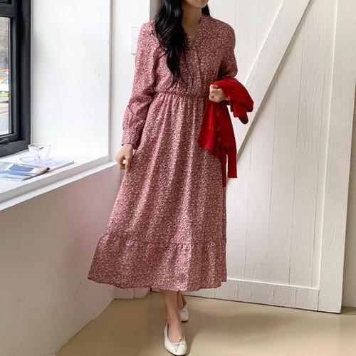 [신상오픈런]잔꽃 랩스타일 브이넥 에이라인 살랑 플로럴원피스 (30202023)