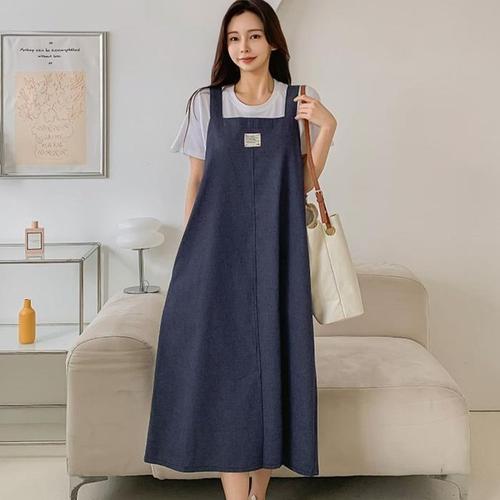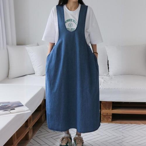 [신상오픈런]데님원피스 에이라인 스퀘어넥 망고나시 민소매 패치 (31655975)