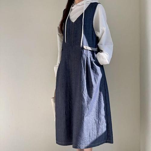 [신상오픈런]클리비지룩 에이라인 플레어 데님원피스 사이드오픈 (31804265)