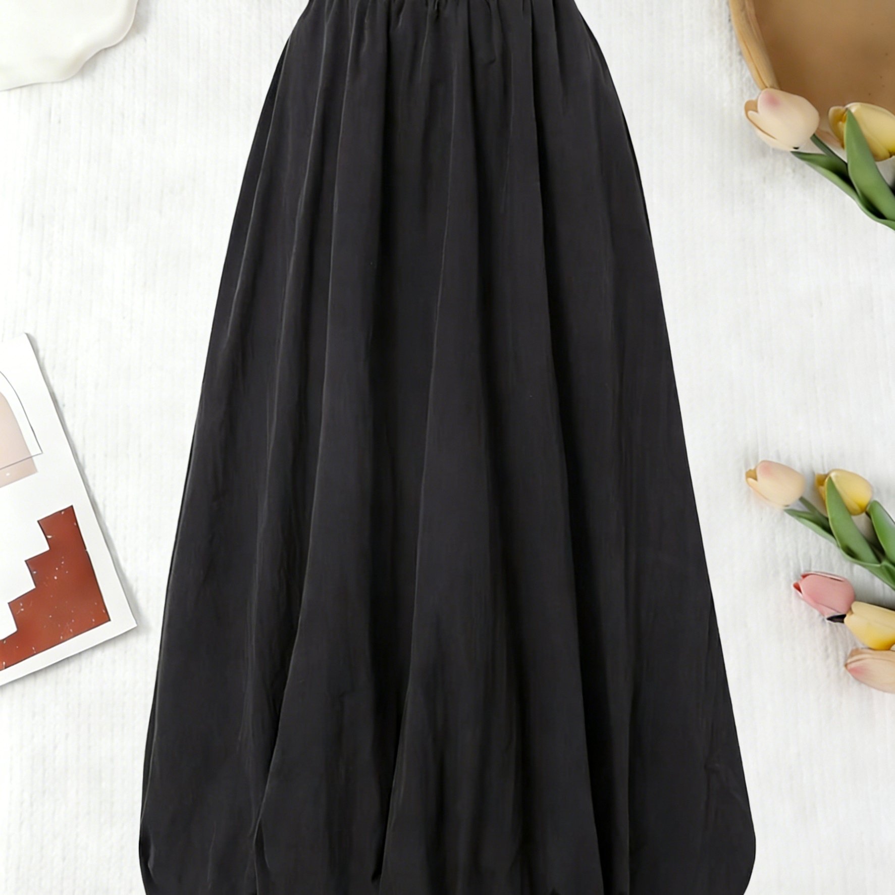 TEMU 여성 솔리드 컬러 롱 스커트 | 캐주얼 하이웨스트 A라인 스커트, 사계절용 플로리디 디자인