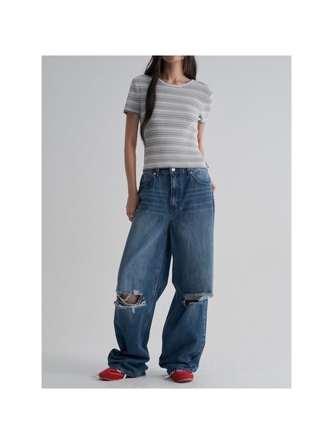 [에잇세컨즈] 데미지 와이드 데님블루 (355821LPEP)