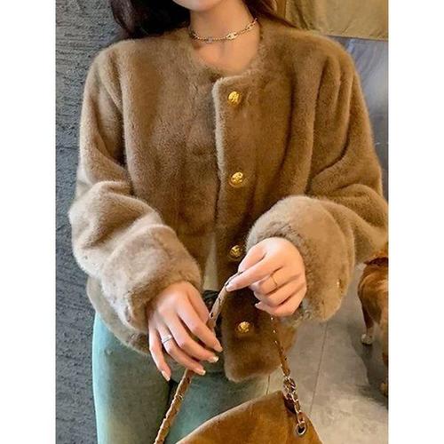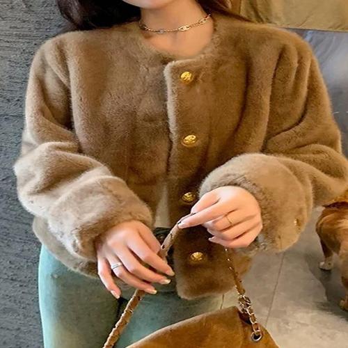 [르뚜앙]로로 겨울 숏코트 아이보리 에코퍼 페이크퍼 노카라 퍼자켓 라운드넥 데일리룩 키작녀 하객룩 오..