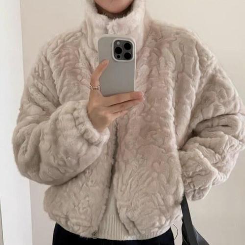 ZAJA 겨울 여성 자켓 숏 퍼자켓 인조 밍크 코트