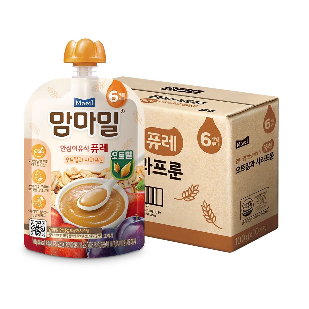 맘마밀 안심이유식 퓨레 6개월 오트밀과 사과프룬 100g*10팩