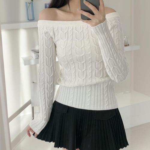 [신상오픈런]오프숄더 여리핏 봄소개팅 엠보싱 피셔니트 여자티 (28981206)