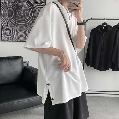 제로스샵 / 투버튼 엠보 트임 오버반팔티 남녀공용