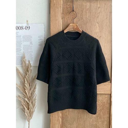 [샵앤]여성 라운드넥 다이아엠보 나그랑 반팔 니트티 BONG-WKN-4817-블랙