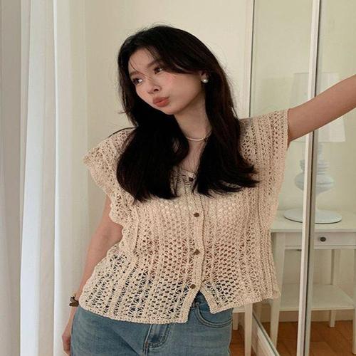 [에이치플러스몰]여름 니트 조끼 여성 크롭 펀칭 넷베스트 그물 데일리