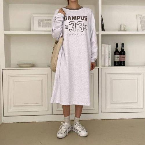 [에이치플러스몰]라운드넥 온나핏 레터링 데님 원피스 여름 트위