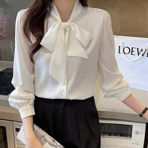 [에이치플러스몰]브이넥 레이스 펀칭 블라우스 0 하객 펀칭 쉬폰 가을 긴팔 블라우스 브이넥 여성 여름 ..