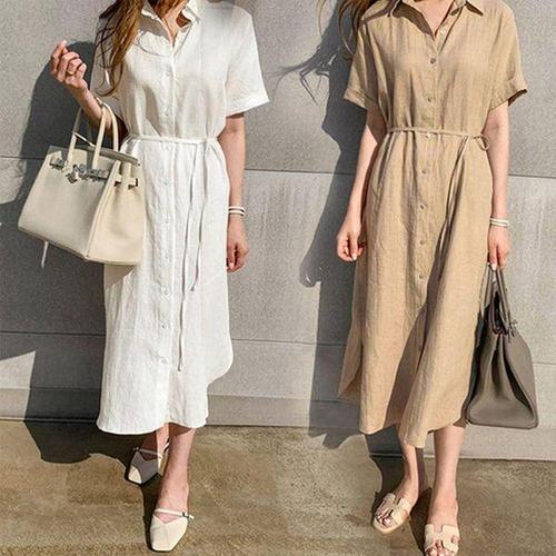 여성 여름 패션 시원한 린넨 롱 루즈핏 원피스 셔츠
