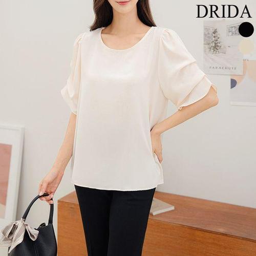 [드리다]여름 여자 반팔 핀턱 소매 라운드 빅사이즈 쉬폰 블라우스 40-50대 중년여성 엄마옷 미시 하객 ..