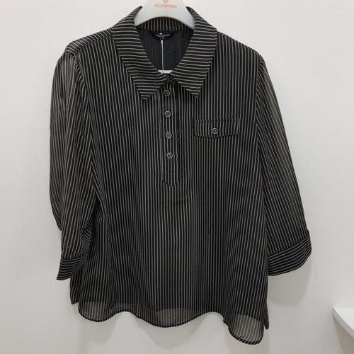 [올포유]여름 여성 스트라이프 쉬폰 블라우스(블랙) ALBLO4131