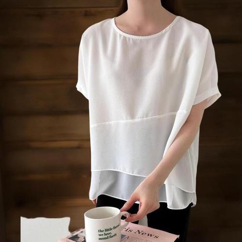 [신상오픈런]여성 여름 반팔 블라우스 쉬폰 레이어드 핀턱 힙커버 (37710954)