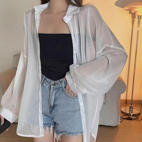[신상오픈런]여성 여름 시스루 핏 오버사이즈 쉬폰 블라우스 (32331201)