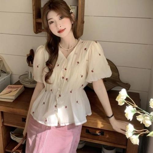 [신상오픈런]우틀루 여성스러운 스프링 여성 부들 블라우스 시폰 날개 썸머