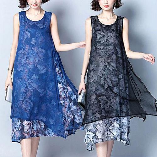 [헬리꽁땡](55~88)2종세트 쉬폰 베일레이어드원피스 캐주얼원피스 쉬폰원피스 엄마옷 임산부여름원피스 ..