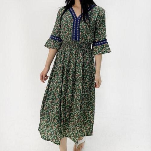 [에이치플러스몰]꽃무늬 패턴 여성 휴양지 나들이 여름 쉬폰 롱 원피스