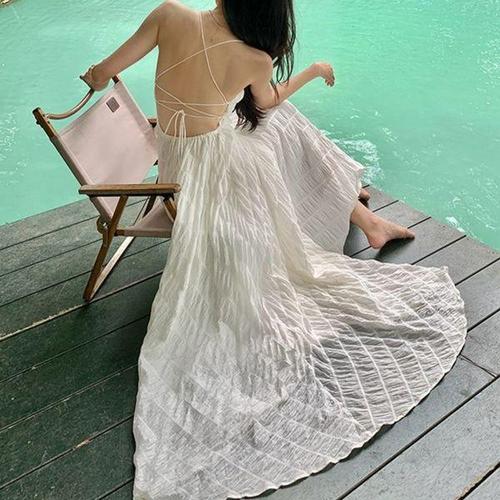 [에이치플러스몰]코코비치 여름 원피스 휴양지 끈나시 롱 쉬폰 K1223