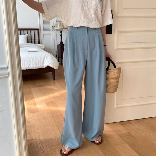 [신상오픈런]여성용 여름 와이드 슬랙스 스판 허벅지 커버 투핀턱 팬츠 (38293496)
