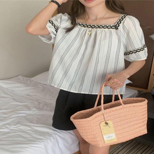 [셀럽하우스]여자 JGKY8835 여름 시원한 스퀘어넥 자수 셔츠 블라우스 반팔
