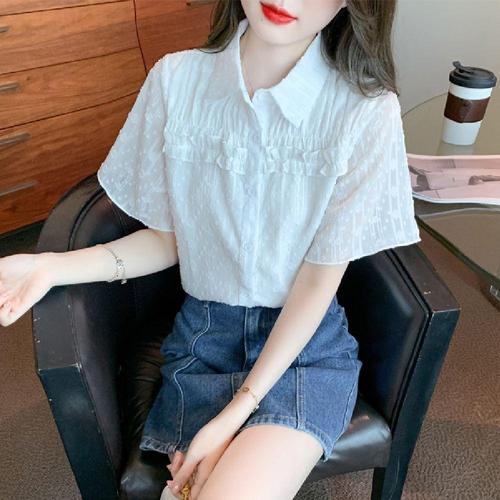 [오너클랜]인기상품 자수 프릴 셔츠 여름 반소매 카라 블라우스 [WFJGW1Z_251108]