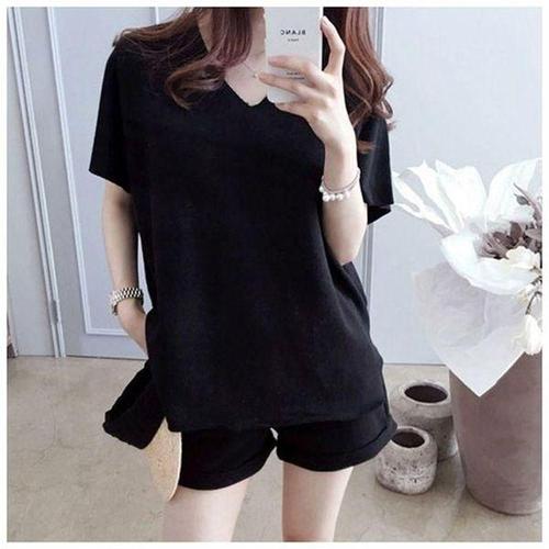 [에이치플러스몰]여성 여름 반팔 반바지 트레이닝 상하 세트 블랙