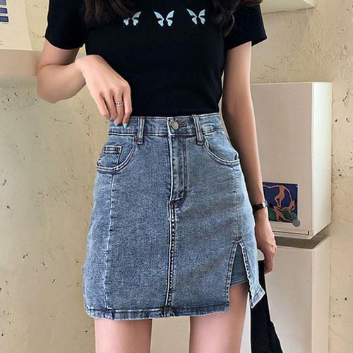 [신상오픈런]여성 절개 디자인 워싱 A라인 여름 청 미니 스커트 (37001179)