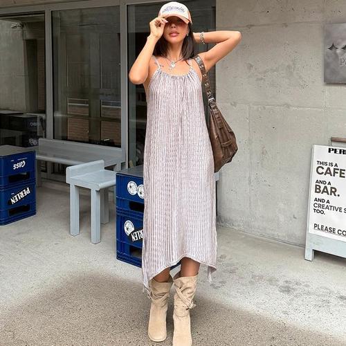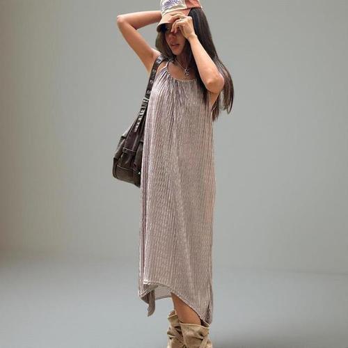 [신상오픈런]여성 여름 플리츠 셔링 롱드레스 끈 스타일 페스티벌룩 (38292904)